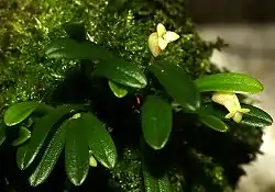 Es una orquídea de pequeño tamaño que prefiere el clima cálido al frío, es de hábitos epífitas a veces, litófitas, con un tallo de color negro, erguido y envuelto basalmente por 2 a 3 cortas vainas tubulares y con una sola hoja, erecta, coriácea, estrechamente obovado-lineal, obtusa a subaguda que está estrechamente cuneada con la base peciolada. Florece en una delgada inflorescencia, erecta a suberecta de 5 a 25 mm de largo, con solo una flor con una bráctea cerca de la base.[1]