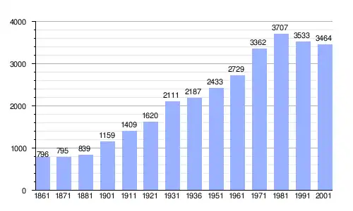 Gráfica de evolución demográfica de Maslianico entre 1861 y 2001 |