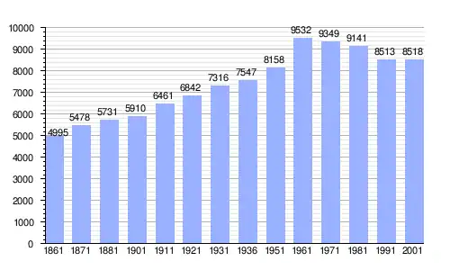 Gráfica de evolución demográfica de Massa Lombarda entre 1861 y 2001 |
