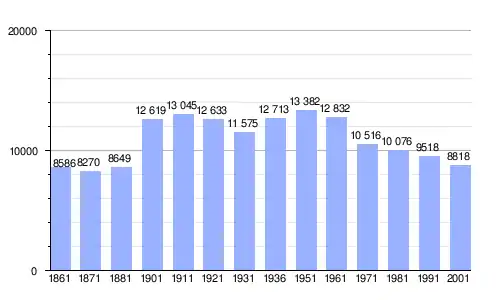 Gráfica de evolución demográfica de Massa Marittima entre 1861 y 2001 |