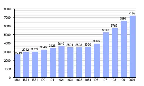 Gráfica de evolución demográfica de Massa e Cozzile entre 1861 y 2001 |