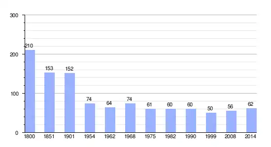 Los datos demográficos contemplados en este gráfico de la comuna de Massy[4] se han cogido de 1800 a 1999 de la página francesa EHESS/Cassini, y los demás datos de la página del INSEE.[5]