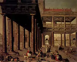 De su actividad como pintor de mitologías y paisajes con figuras queda el Paisaje con Píramo y Tisbe, Real Academia de Bellas Artes de San Fernando, firmado sin fecha, inventariado en el Palacio del Buen Retiro en 1700 junto a una Fábula de Venus y Marte, perdida, y otra de Diana y Acteón que, depositada -1901- por el Museo del Prado en el Museo de Tortosa, desapareció en 1936. De la misma procedencia son sendos paisajes puros que en 1882 pasaron a la Diputación de Santiago de Cuba, y algunos más con escenas galantes y de cacería (Paisaje montañoso con caza del oso, Museo del Prado, depositado en el Cuartel general del Ejército, y Paisaje con palacio y atalaya, Prado, en depósito en el Tribunal Supremo). Se desconoce el grado de vinculación del pintor con la Corte, no habiendo sido posible documentar su presencia en Madrid, pero en todo caso puede afirmarse que su producción de obras de género no quedó limitada a servir con ellas a palacio: en 1656, el mismo año en que firmó los ya citados retablos de Villanueva de Jiloca y Arbancón, fechó una Riña de pícaros (Mairena del Alcor, colección Bonsor) copiada, una vez más, de una antigua estampa de Francisco Villamena, fechada ésta en 1603.