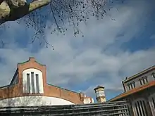 La cubierta, con las tejas vidriadas de colores, es a dos aguas con la parte central más altura permitiendo la entrada de luz cenital y la ventilación. En el interior las paredes estaban protegidas con un zócalo de cerámica vidriada utilizada también como ornamento en las ventanas. En el exterior la estructura se refleja en las fachadas con unas pilastras y arcos de obra vista con ventanas de vitrales de colores (amarillo y rosado).