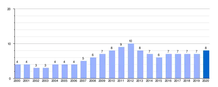 Gráfica de evolución demográfica de Matalbaniega entre 2000 y 2020 |