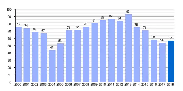 Gráfica de evolución demográfica de Matavenero y Poibueno[1] entre 2000 y 2018