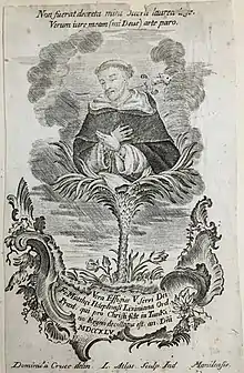 ![]() Retrato de fray Mateo Alonso de Leciniana, grabado firmado en Manila por Laureano Atlas por dibujo de Domingo de la Cruz. Ilustración de Juan Navamuel, Cueba de Santo Domingo en Segovia... y frutos cogidos por sus méritos y en especial por los de la sangre que derramó en ella, ya en los nuevos martyres de Tunkin, el venerable Padre Fray Matheo Alonso de Leciniana, y su compañero el venerable Padre Fr. Francisco Federich, del Orden de Predicadores, y de la Provincia del Santísimo Rosario de Philipinas, Madrid, 1752 | ||