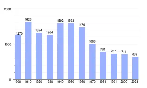 Gráfica de evolución demográfica de Matilla de los Caños del Río entre 1900 y 2021 |