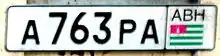 El gobierno de Abjasia, independiente de facto de Georgia, emite su propia matrícula para los vehículos matriculados en el territorio que controla.