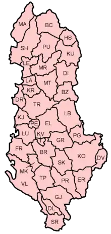 El Código Regional es una abreviatura de dos letras que se relaciona con el distrito al que corresponden, siendo, por ejemplo, "KO", una abreviatura del distrito de Korce.