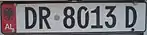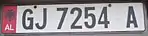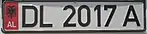 La matrícula está configurada de la siguiente manera. A la izquierda se encuentra, en rojo, la señal que indica que el vehículo pertenece a Albania más la sigla "AL". Luego hay dos letras que corresponden a la región del vehículo. A continuación va una serie de 4 dígitos, y por último una letra que corresponde al año. Las letras O y Q no se utilizan por posibles equivocaciones. La Z se usa para vehículos del gobierno.