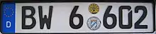 El otro sello se ubica en la matrícula trasera, encima del distrito, y es necesario para demostrar que el vehículo ha pasado la Hauptuntersuchung y saber la fecha de la próxima emisión. Cambia de color según los años, para saber fácilmente la fecha de la próxima revisión.