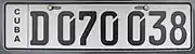 Los vehículos de la base militar de Guantánamo usaban placas con una letra y cuatro dígitos, y los textos "U. S. N. B." and "Gtmo Bay Cuba".