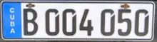 La letra A identifica las matrículas oficiales, actualmente de color blanco; las letras C, D, y E, para el sector diplomático; la letra K para los extranjeros, las letras F y M para identificar FAR y MININT, respectivamente, y la T, para los vehículos rentados al turismo. El resto de las letras no tiene ningún significado.