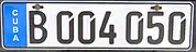Los autos del ejército de los Estados Unidos en la Bahía de Guantánamo usan placas con una letra y cuatro números, y los textos "U.S.N.B." y "Gtmo Bay Cuba".