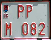 La forma antigua (en eslovaco: ŠPZ, štátna poznávacia značka) XX-NNNN o XXY-NNNN dejó de usarse el 1 de enero de 2005.