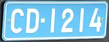 Los vehículos diplomáticos de embajadas o del personal diplomático llevan unas placas de fondo azul cielo y caracteres blancos, compuestas por las letras CD (por Corps Diplomatique) y cuatro cifras o las letras C y un máximo de cinco cifras.[6]