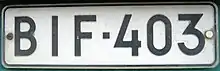 - En 1960 se añadió un borde blanco a la placa. El número de registro se componía de tres letras y una o dos cifras.