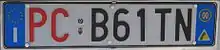 De 1994 a la actualidad![]() De 1994 a 1999. Matrícula trasera. De AE 000 HJ a AE 999 HJ, provincia de Como. Desde el 28 de febrero de 1994 se introdujo un sistema de enumeración de matrículas totalmente nuevo, omitiendo cualquier referencia al lugar de origen. Se basaba en un simple código alfanumérico AA 999 AA. Donde "A" podía ser culaquier letra del alfabeto latino excepto I, O, Q, U; "9" podía ser cualquier número. Por ejemplo: AK 514 RH, AX 848 LK, BA 924 NS, etc. Primero cambian los números, al completar una serie cambian las letras de derecha a izquierda. Por lo que la primera matrícula sería AA 000 AA, seguido de AA 002 AA, [...] AA 999 AA, AA 000 AB hasta AA 999 AZ, para comenzar por AA 000 BA hasta AA 999 ZZ, luego AB 000 AA hasta AZ 999 ZZ, luego BA 000 AA hasta ZZ 999 ZZ. Las traseras no tiene ya dos piezas. ![]() De 1999 a la actualidad. Matrícula de Bolzano. En 1999, se rediseñaron las matrículas, partiendo de BB 000HH. Los dígitos se hicieron más gruesos. Los últimos dígitos decimales estaban más cerca de las letras. Se añadió la eurobanda azul en el lado izquierdo, con la bandera de Europa y la I del país. Además se añadió otra banda azul a la derecha con un círculo amarillo con el año de matriculación (opcional). El código provincial es opcional. La capital, Roma, puede llevar la palabra Roma reemplazando a los 2 dígitos del código. Los códigos van en mayúsculas excepto en 3 casos: Bolzano/Bozen (Bz), Trento (Tn) y Valle de Aosta (Ao). La reintroducción del código provincial (aunque no fuese un elemento obligatorio) se realizó porque no tuvo buena aceptación la eliminación de las 2 letras provinciales en 1994. Desde 2003, el código PGS B1 o PGS A1 se ha sustituido por el MEF B1 o MEF A1