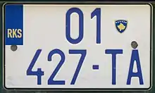 El 6 de diciembre de 2010 se introdujo un nuevo tipo de placa,[2] que incluye, de izquierda a derecha: una banda vertical azul dentro de la cual, en la parte inferior, están escritas en color amarillo las letras RKS (por República de Kosovo), un número de dos dígitos identificativo del distrito, el escudo nacional, un número de tres dígitos, un guión y dos letras. La numeración de tres dígitos comienza a partir de 101 y las letras avanzan en orden alfabético empezando por "AA". El nuevo sistema y el nuevo formato han ido sustituyendo paulatinamente a los antiguos.