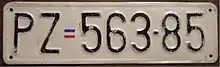 - Coches de las autoridades gubernamentales de los distritos: el código numérico de la zona de matriculación va seguido de la letra Z (p. ej.: 01Z) y de otros dos números de dos cifras separados por un guion.
