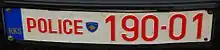 - Vehículos policiales: tienen caracteres rojos y la palabra POLICE en lugar del número de distrito.
