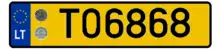 Las placas de matrícula de los vehículos de Lituania se componen de tres letras y tres cifras, separadas por un espacio, de color negro sobre un fondo blanco (AAA 111) que no indican la procedencia del vehículo. Las placas tienen el mismo tamaño y longitud que las del resto de países de la Unión Europea (520 x 110 mm).[1] Al igual que ellas, también muestran la franja azul a la izquierda con las estrellas de la bandera europea y el distintivo internacional del país, LT.