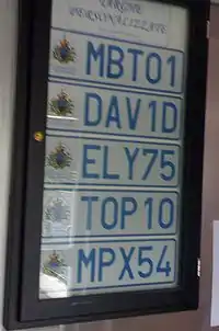 Las matrículas vehiculares sanmarinenses están compuestas de una letra junto con cuatro números desde 1993. Las placas son de tamaño reducido, de caracteres azul celeste y fondo blanco; en su lado izquierdo aparece el escudo de San Marino y debajo figura el nombre oficial Repubblica di San Marino. Su sigla internacional es RSM .