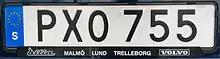 Las placas de matrícula de los vehículos de Suecia siguen desde el año 2004 un sistema alfanumérico formado por tres letras y tres cifras separadas por un espacio (por ejemplo, ABC 123) de color negro sobre un fondo blanco y las medidas de la placa son de 520 mm por 110 mm.[1] La combinación es simplemente una serie alfanumérica y no tiene conexión con una determinada ubicación geográfica, pero la última cifra sirve para indicar cuándo se tiene que pasar la inspección técnica del vehículo (ya que antes de 2014 lo indicaba un adhesivo obligatorio ubicado en el centro).