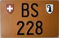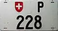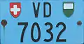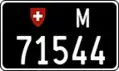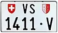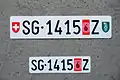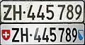 La placa consta de dos letras que indican el cantón y dígitos de color negro sobre fondo blanco. La placa de la parte posterior tiene en el lado izquierdo el escudo suizo y en el derecho el del cantón. Los números bajos suelen corresponder a los vehículos de servicio público. la placa delantera es más pequeña que la trasera, y tiene el mismo número que en la trasera, solo que carece de escudos.