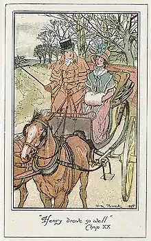 El señor Knightley, medio serio y medio burlón, considera que los dieciséis años pasados en Hartfield como institutriz prepararon a la señorita Taylor, acostumbrada a cumplir los deseos de Emma, a «el aspecto lo más importante de la vida conyugal, a inclinarse a la voluntad del otro y hacer lo que se le pide», [110]) pero, dada la naturaleza fácil de su esposo, ella probablemente tendrá pocas oportunidades.[111] Él, también, como hombre pragmático, enfatiza el lado financiero y socialmente ventajoso del matrimonio para la señorita Taylor: incluso ella podía haberse quedado en la casa Woodhouse, donde era tratada como un miembro de la familia, cambiando de estado, de institutriz sin dinero, a la situación de una mujer honorablemente casada, establecida en una casa propia y con un ingreso satisfactorio, que le permite ver su futuro con tranquilidad y serenidad.[106]