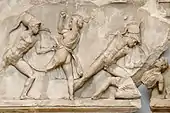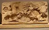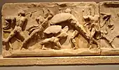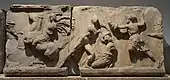 - Placa de la Amazonomachy que se cree muestra a Herculeas tomando el pelo de la reina amazona Hippolyta.
