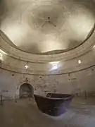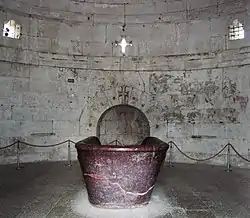 Situada en el centro del piso superior se encuentra una tumba circular de pórfido donde se supone que debían descansar los restos de Teodorico una vez fallecido. Dichos restos fueron extraídos durante la dominación bizantina y el mausoleo se convirtió en una capilla cristiana.