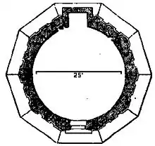 - el inferior con forma decagonal, con nichos en cada lado, bajo arcos de medio punto y con un interior en forma de cruz;
