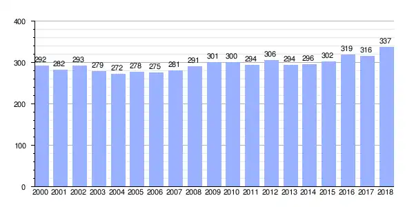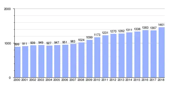 Gráfica de evolución demográfica de Maianca (lugar) entre 2000 y 2018 |