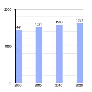 Cuenta con 1631 habitantes lo que representa un incremento promedio de 0.33% anual en el período 2010-2020 sobre la base de los 1580 habitantes registrados en el censo anterior. Ocupa una superficie de 0.3945 km², lo que determina al año 2020 una densidad de 4134 hab/km².[4]