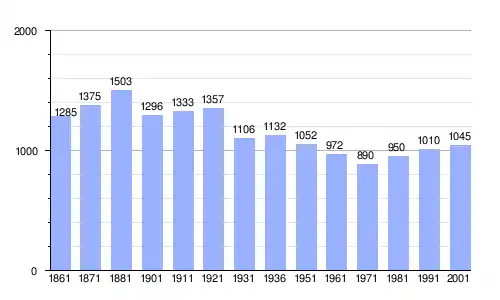 Gráfica de evolución demográfica de Mazzo di Valtellina entre 1861 y 2001 |