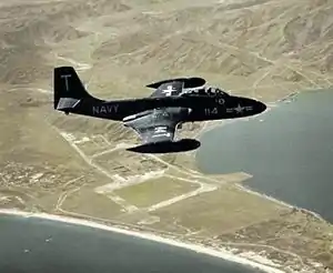 ![]() Un F2H-2 Banshee de la Armada estadounidense sobre Wŏnsan, Corea del Norte, durante la Guerra de Corea en 1952.