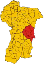 Me Sang es uno de los doce distritos que forman la provincia camboyana de Prey Veng, con una población estimada en marzo de 2008 de 89 885 habitantes. Está dividido en las siguientes comunas (khum), que se muestran asimismo con población estimada de 2008: