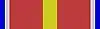 La medalla se cuelga de una cinta roja de 40 mm de ancho, con dos estrechas franjas azules y blancas a los lados y una franja amarilla de 3 mm de ancho en el medio.