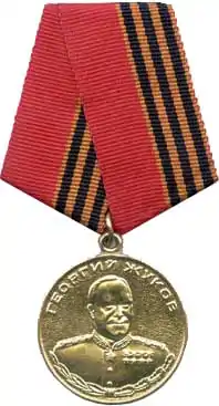 La Medalla de Zhúkov (en ruso, медаль Жукова) es una medalla conmemorativa de la Federación de Rusia establecida por decreto del Presidente de la Federación de Rusia N.º 930 del 9 de mayo de 1994,[1] inicialmente se otorgaba a los veteranos de la Gran Guerra Patria, pero actualmente se otorga a los miembros en servicio de las Fuerzas Armadas de la Federación de Rusia por hechos destacados de valor. Lleva el nombre del mariscal de la Unión Soviética Gueorgui Zhúkov, el militar más condecorado en la historia de la Unión Soviética.