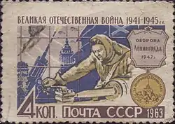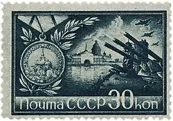 Leningrado recibió el título de «Ciudad Heroica» el 1 de mayo de 1945 (las otras ciudades en obtenerlo fueron Odesa, Stalingrado, Sebastopol, Kiev, Moscú, la Fortaleza de Brest, Kerch, Novorossiysk, Minsk, Tula, Múrmansk y Smolensk).[5]