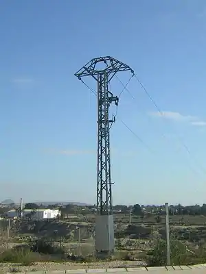 Los apoyos de las líneas aéreas suelen ser de media altura, aproximadamente 7 metros, con un único conductor por fase, y hasta 4 circuitos por apoyo..