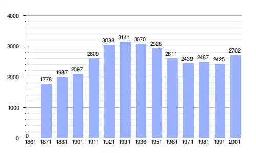 Gráfica de evolución demográfica de Meduna di Livenza entre 1861 y 2001 |