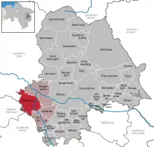 Se encuentra ubicado a poca distancia al oeste de la frontera con el estado de Sajonia-Anhalt, y muy cerca de las ciudades de Brunswick y Wolfsburgo.