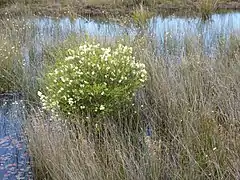 Es uno de los tres árboles típicos que crecen en la turba de Swan Coastal Plain, comunidades ecológicas alrededor de las descargas acuosas de Gnangarra Mound.