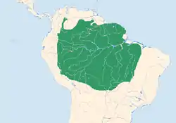 Esta especie de ave y las subespecies se localizan en Colombia, Venezuela, Guayana Francesa, Brasil, Ecuador, Bolivia y en el Perú.[2]
