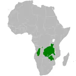 El carbonero del miombo se encuentra en el sur de África central y el norte del África austral. Como indica su nombre común su hábitat principal son los bosques de miombo, entre otros bosques secos, distribuidos por Angola, la República Democrática del Congo, Malaui, Mozambique, Tanzania, Zambia y Zimbabue.