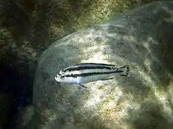 Melanochromis parallelus es una especie de peces de la familia Cichlidae en el orden de los Perciformes.