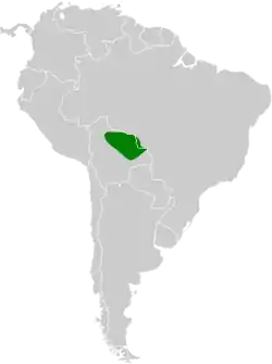 Se distribuye en el este de Bolivia, en el este del departamento de Santa Cruz y adyacencias de Brasil, en el suroeste del estado de Mato Grosso.[2]